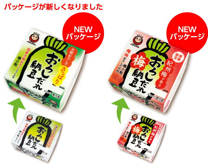 おろしだれ納豆シリーズ(おろしだれ納豆・おろしだれ梅納豆)のパッケージが2022年3月リニューアル!