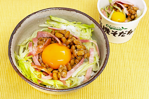 カリカリベーコンがクセになる!洋風納豆卵ご飯