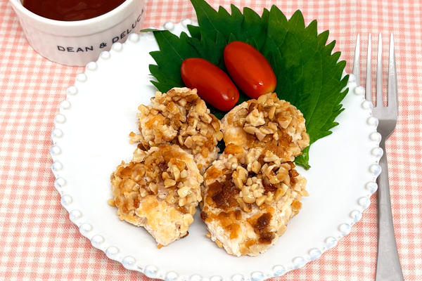 - タレはケチャップとカレー粉の合わせダレ、または納豆のタレとからしを混ぜて作っても◎。 ミニトマトを添えて、お好みのタレでどうぞ♪
